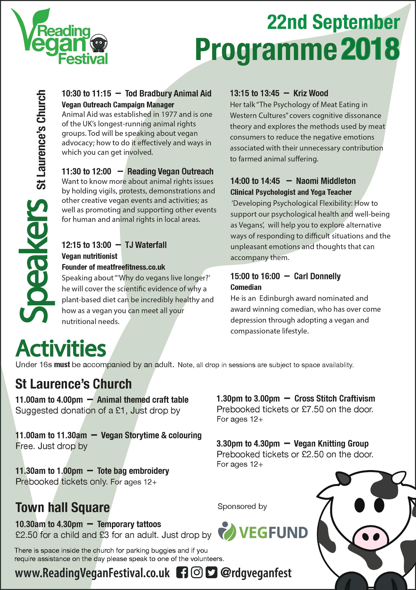 Reading Vegan Festival wouldn't be possible without our amazing volunteers, incredible speakers and fantastic stallholders. If you would like to volunteer at this year's festival then please contact us or complete the form here.